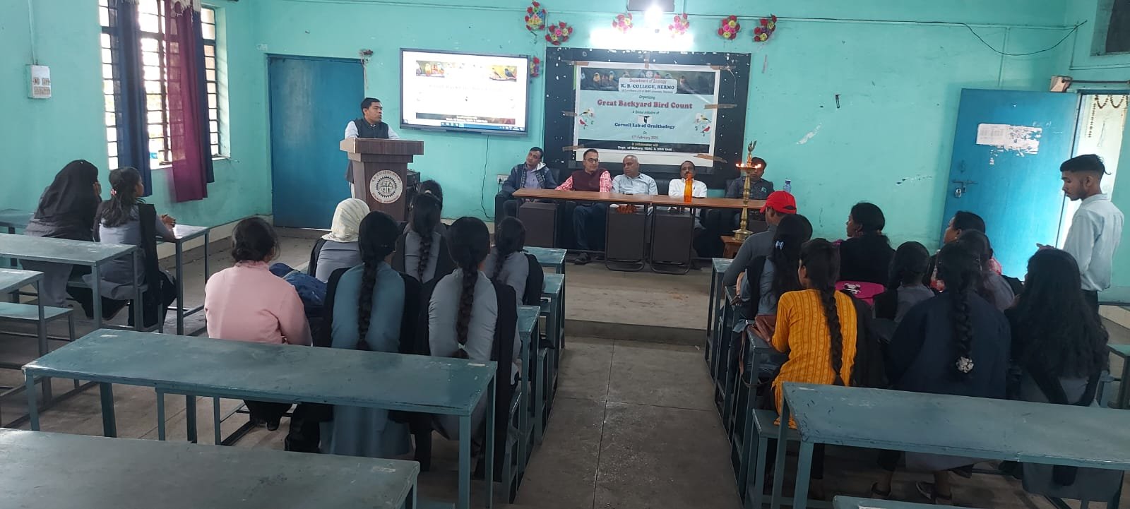 प्राचार्य लक्ष्मी नारायण की अध्यक्षता में जंतु शास्त्र विभाग, एन एस एस एवं आई क्यू ए सी के संयुक्त तत्वावधान में ग्रेट बैकयार्ड बर्ड काउंट कार्यक्रम जंतु शास्त्र सभागार में दीप प्रज्ज्वलित करके किया गया। प्राचार्य लक्ष्मी नारायण ने कहा पक्षी पर्यावरण के महत्वपूर्ण अंग हैं। ग्रेट बैकयार्ड बर्ड काउंट कार्यक्रम हर वर्ष फरबरी माह में चार दिनों तक मनाया जाता है। इस बार ये 14 से 17 फरवरी तक आयोजित है जिसमें पक्षियों की गिनती करने व पंछी संरक्षण में योगदान करने के लिए सभी स्तरों पर पक्षी प्रेमियों को शामिल किया जाता है। प्रो इंचार्ज प्रो गोपाल प्रजापति ने बताया ग्रेट बैकयार्ड बर्ड काउंट के द्वारा एकत्र किए गए डेटा को ऑनलाइन वेब इंटरफ्रेंस इ बर्ड में प्रस्तुत किया जाता है। इस कार्यक्रम का लक्ष्य कुछ मिनटों के लिए पक्षियों का पर्यवेक्षण करना, उनकी पहचान करना तथा उनकी गिनती करना है। इस अभ्यास को दिन में कई बार दोहराया जा सकता है तथा पक्षियों की सूची, विवरण और तस्वीर ई बर्ड नाम की वेबसाइट पर अपलोड की जाती है।