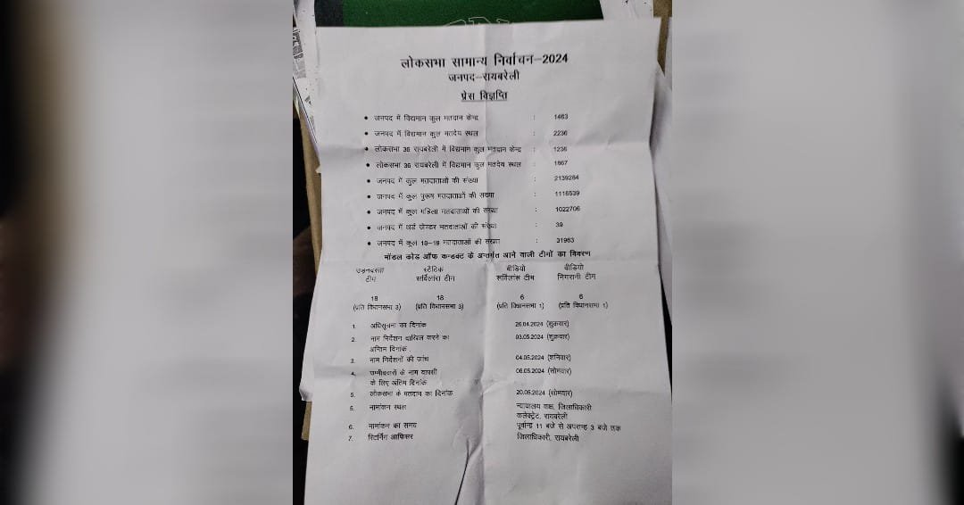 रायबरेली : आचार संहिता लागू होने बाद जिला निर्वाचन अधिकारी हर्षिता माथुर ने पुलिस अधीक्षक अभिषेक अग्रवाल के साथ बचत भवन सभागार में लोकसभा सामान्य निर्वाचन-2024 को निष्पक्ष, सकुशल व शांतिपूर्ण ढंग से संपन्न कराये जाने को लेकर मीडिया प्रतिनिधियों के साथ वार्ता की। वार्ता के दौरान जिला निर्वाचन अधिकारी ने मीडिया प्रतिनिधियों को बताते हुए कहा कि जनपद में कुल 1463 मतदान केंद्र तथा 2236 मतदाता स्थल है। जनपद में कुल मतदाताओं की संख्या 2139284 है। जिनमे कुल पुरुष मतदाताओं की संख्या 1116539 और कुल महिला मतदाताओं की संख्या 1022706 है। कुल ट्रांसजेंडर मतदाता 39 है। उन्होंने बताया कि आचार संहिता लगने के बाद उड़ान दस्ता टीम, स्टेटिक सर्विलांस टीम, वीडियो सर्विलेंस टीम और वीडियो निगरानी टीम का गठन कर दिया गया है। जनपद में अधिसूचना 26 अप्रैल को लागू हो जाएगी। उम्मीदवारों के नाम निर्देशन दाखिल करने का अंतिम दिन 3 मई, नाम निर्देशन की जांच 4 मई, उम्मीदवारों के लिए नाम वापसी के लिए अंतिम दिनांक 6 मई, मतदान 20 मई को होगा। नामांकन स्थल न्यायालय कक्ष कलेक्ट्रेट परिसर रायबरेली होगा। नामांकन का समय 11:00 से 3:00 बजे तक रहेगा। उन्होंने मीडिया से बात करते हुए कहा कि मतदान सकुशल संपन्न कराने में आप लोगो का सहयोग अपेक्षित है।