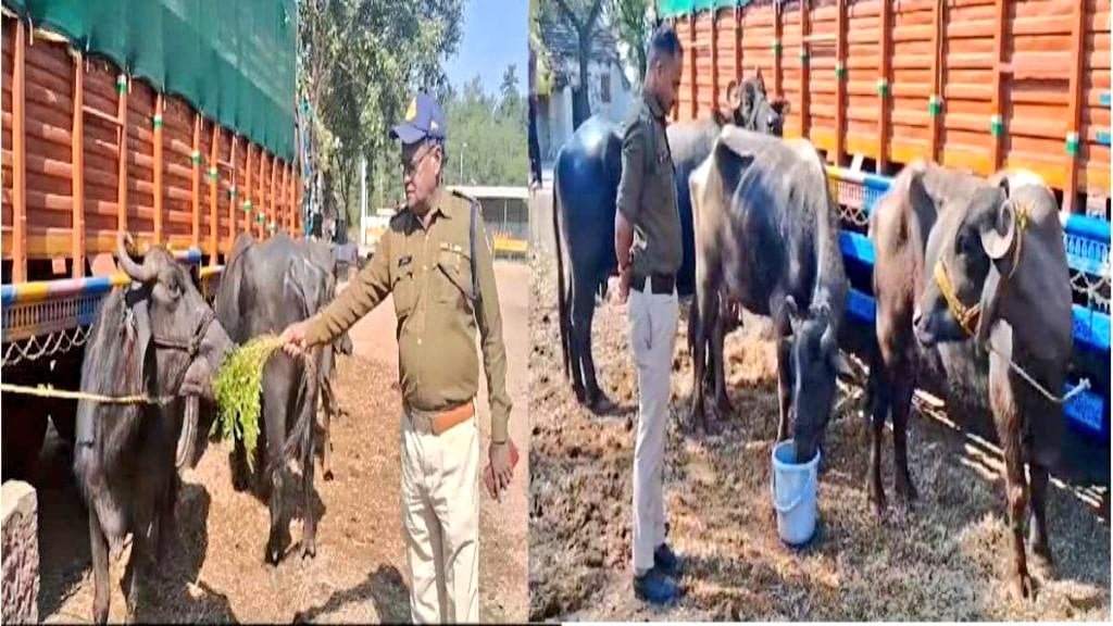 खंडवा ज़िले के जावर थाना पुलिस ने कुछ दिनों पहले चेकिंग के दौरान 17 भैंसे पकड़ी जो कथित बिना परमिट के ट्रांसपोर्ट की जा रही थी।