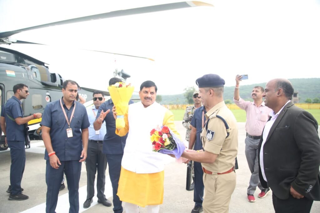 मुख्यमंत्री डॉ. मोहन यादव गुरुवार को नरसिंहगढ़ हेलीपैड पहुंचे। जहां मुख्यमंत्री डॉ. यादव का पुष्पगुच्छ भेंट कर आत्मीय स्वागत किया गया। मुख्यमंत्री डॉ.यादव के साथ राज्य मंत्री (स्वतंत्र प्रभार) नारायण सिंह पंवार, राज्य मंत्री (स्वतंत्र प्रभार) गौतम टेटवाल, सांसद रोडमल नागर, विधायक नरसिंहगढ़ मोहन शर्मा भी पहुंचे।