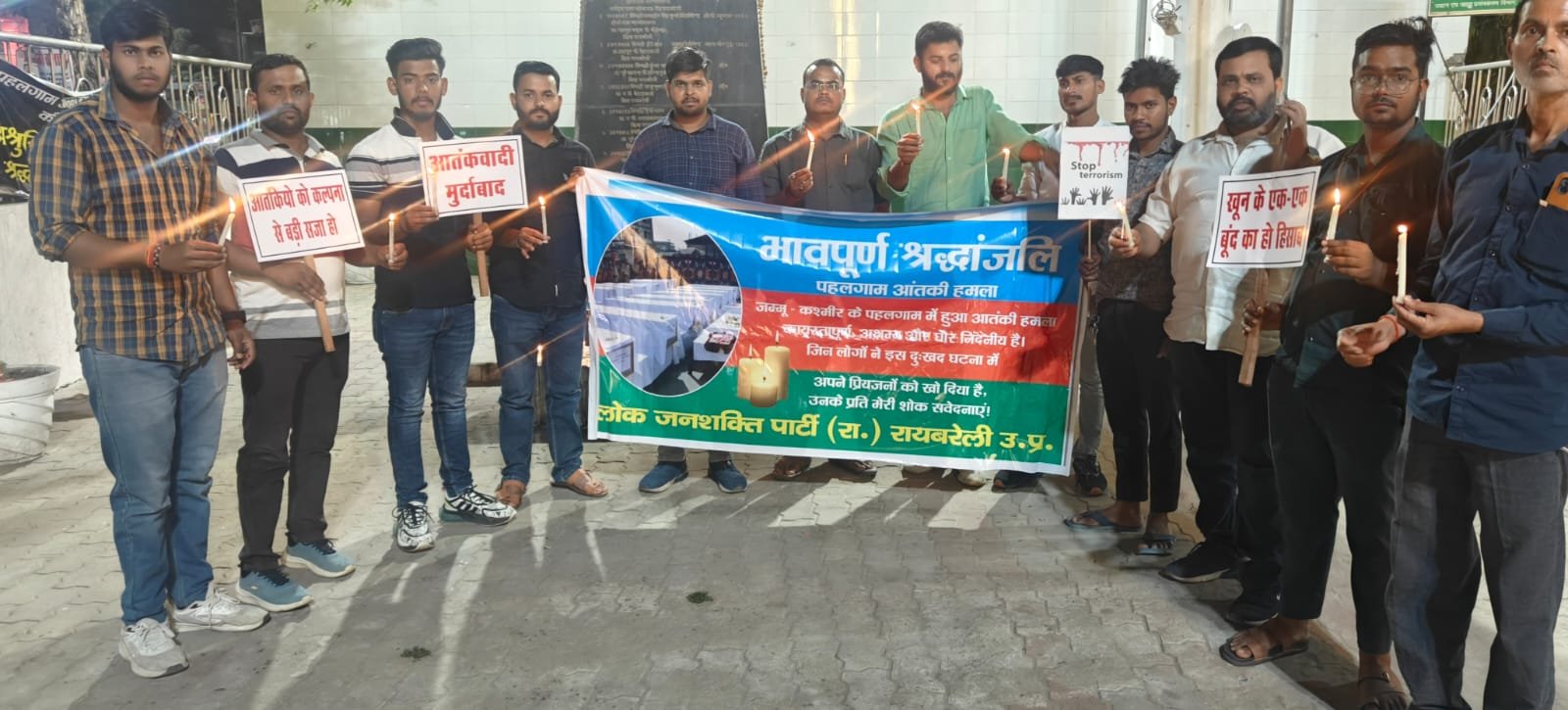 लोक जनशक्ति पार्टी (लोजपा) के रायबरेली अध्यक्ष नगीना सिंह के नेतृत्व में डिग्री कॉलेज चौराहे पर जम्मू-कश्मीर के पहलगाम में आतंकी हमले में मारे गए पर्यटकों को श्रद्धांजलि दी गई। इस अवसर पर पार्टी के पदाधिकारियों और सदस्यों ने आतंकी हमले की कड़े शब्दों में निंदा की। सैकड़ों लोग कैंडल मार्च में शामिल हुए और हाथों में तख्तियां लेकर मृतकों के प्रति अपनी संवेदना व्यक्त की। नगीना सिंह ने कहा कि आतंकवादियों ने जिस कायरतापूर्ण तरीके से इस हमले को अंजाम दिया, उसका मुंह तोड़ जवाब दिया जाएगा। उन्होंने जोर देकर कहा, “खून का बदला खून से लिया जाएगा। समय आने पर आतंकवादियों को करारा जवाब मिलेगा।” उन्होंने पाकिस्तान और आतंकवाद को जड़ से खत्म करने की मांग उठाई, जिसे उपस्थित लोगों ने भी समर्थन दिया।
