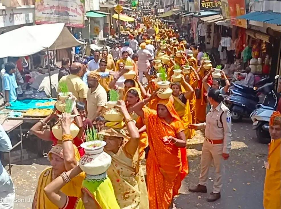 करीब 2 हजार महिलाएं उपजेल रोड के हनुमान मंदिर से सिर पर कलश लेकर मुख्य मार्गों से होते हुए पचोर रोड के कार्यक्रम स्थल तक पहुंचीं।