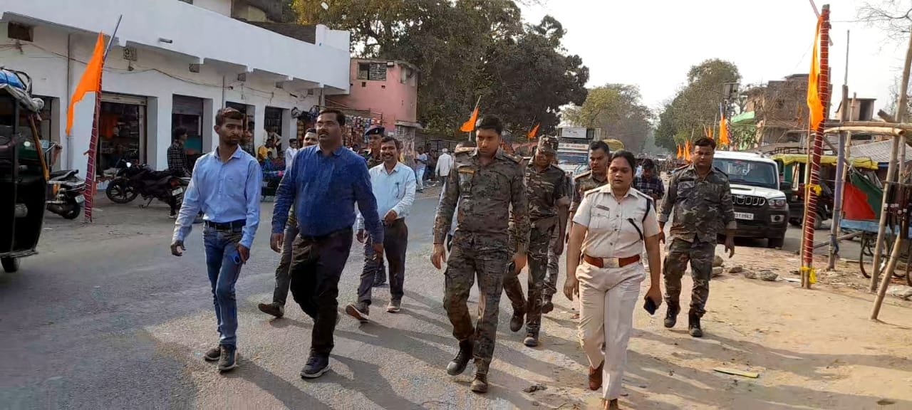 अंचलाधिकारी कृष्ण मुरारी तिर्की व पुलिस निरीक्षक पूनम टोप्पो के नेतृत्व में शुक्रवार को रामनवमी त्यौहार को लेकर प्रशासन द्वारा सतबरवा थाना क्षेत्र के बकोरिया, सतबरवा, बारी, झाबर, आदि गांव में दर्जनों पुलिस बल के साथ फ्लैग मार्च निकाला गया। मौके पर श्री तिर्की ने आम प्रबुद्ध लोगों से शांतिपूर्ण वातावरण में रामनवमी त्यौहार मनाने की अपील की। उन्होंने कहा कि त्योहार किसी भी धर्म समुदाय का हो एक साथ मिलकर सौहार्दपूर्ण वातावरण में मनाऐं और एक दूसरे का सहयोग कर मिशाल कायम करें । वही इंस्पेक्टर पूनम टोप्पो ने आम लोगों से अपील करते हुए कहा कि रामनवमी त्योहार आप सब मिलकर शांतिपूर्ण तरीके से मनाए, वहीं थाना प्रभारी विश्वनाथ कुमार राणा ने कहा कि पुलिस प्रशासन हमेशा आपके सहयोग के लिए तत्पर है। आप सब शांतिपूर्ण तरीके से त्योहार मनाए । वही उन्होंने वैसे असामाजिक तत्व जो किसी भी त्यौहार में अफवाह और गड़बड़ी पैदा करने की कोशिश करते हैं वैसे लोगो पर पुलिस की पैनी नजर रहेगी। अफवाहों पर ध्यान न देते हुए किसी भी गड़बड़ी की सूचना तुरंत पुलिस को दें। वैसे लोगो को किसी भी सूरत में बक्सा नहीं जाएगा । इस मौके पर एसआई सुबोध कुमार, अमित उपाध्याय, एएसआई बसंत दुबे, बसंत महतो, योगेश चंद्र बोइपाई, सुखसागर सिंह, बिजेंद्र कुमार राय, सुमन एक्का, रघुराई कोटवार सहित सतबरवा थाना के दर्जनों पुलिस के जवान फ्लैग मार्च में शामिल थे।
