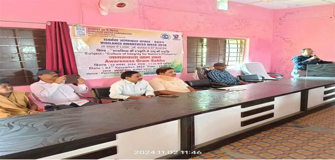डीवीसी, बोकारो ताप विद्युत केंद्र बोकारो थर्मल में मनाए जा रहे सतर्कता जागरूकता सप्ताह के दौरान आज शनिवार को पंचायत भवन, कंजकीरो में एक ग्राम-सभा का आयोजन किया गया। परियोजना के सतर्कता अधिकारी मो.तारिक सईद ने उपस्थित लोगों का परियोजना की ओर से स्वागत संबोधन के साथ शिकायतों की सुनवाई उचित माध्यमों से करने की जानकारी दी। कर्पूरी उच्च विद्यालय की प्रधानाध्यापिका जय लक्ष्मी ने भ्रष्टाचार को समाज के लिए अभिशाप बताया। बोकारो थर्मल डिग्री कॉलेज के प्राचार्य जी पी सिंह ने सत्यनिष्ठा के चारों सामाजिक, राजनैतिक, शैक्षणिक और आर्थिक आयामों पर प्रकाश डाला। सामाजिक कार्यकर्ता मोती महतो ने कहा सतर्कता से ही समाज विकसित होता है। पंचायत सचिव सदस्य रेवतलाल महतो ने अपने विचार रखते हुए अपने आप में सुधार को देश समृद्ध का आधार बताया। डीवीसी, बोकारो थर्मल परियोजना के उप महाप्रबंधक (प्रशासन) बी जी होलकर ने ” सत्यनिष्ठा की संस्कृति से राष्ट्र की समृद्धि” पर विस्तार से प्रकाश डालते हुए कहा-अच्छी आदतों की शुरुआत घर से होती है। उन्होंने विद्यालय में नैतिक शिक्षा को बढ़ावा देने पर जोर देने की बात कही । ग्राम सभा के संचालन और धन्यवाद ज्ञापन दीनानाथ शर्मा, सहायक नियंत्रक(यां) ने किया। कार्यक्रम को सफल बनाने में मो० कैफ़ी का योगदान सराहनीय रहा ।