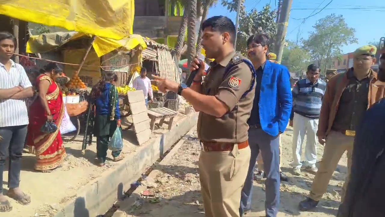 गोरा बाजार रोड पर पटरी के दोनों तरफ हुए अतिक्रमण को नगर पालिका व पुलिस बल ने हटवाया