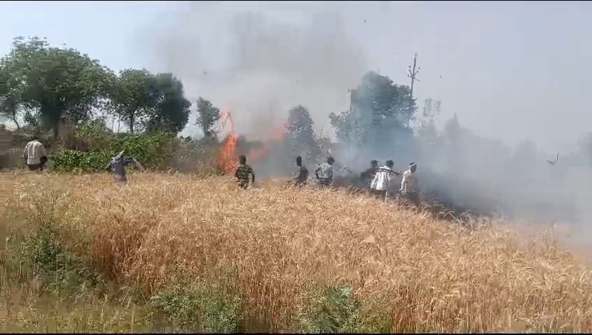 अज्ञात कारणों से राजघाट के पास गेंहू के खेतों में लगी आग, कई बीघे फसल जलकर राख