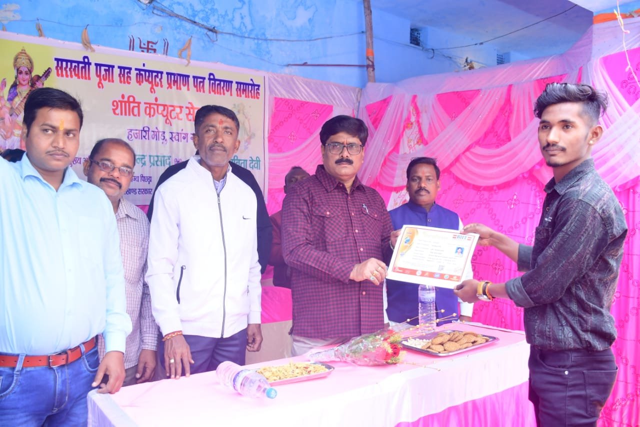 विद्यार्थियों को मिला कंप्यूटर प्रशिक्षण का प्रमाण पत्र
