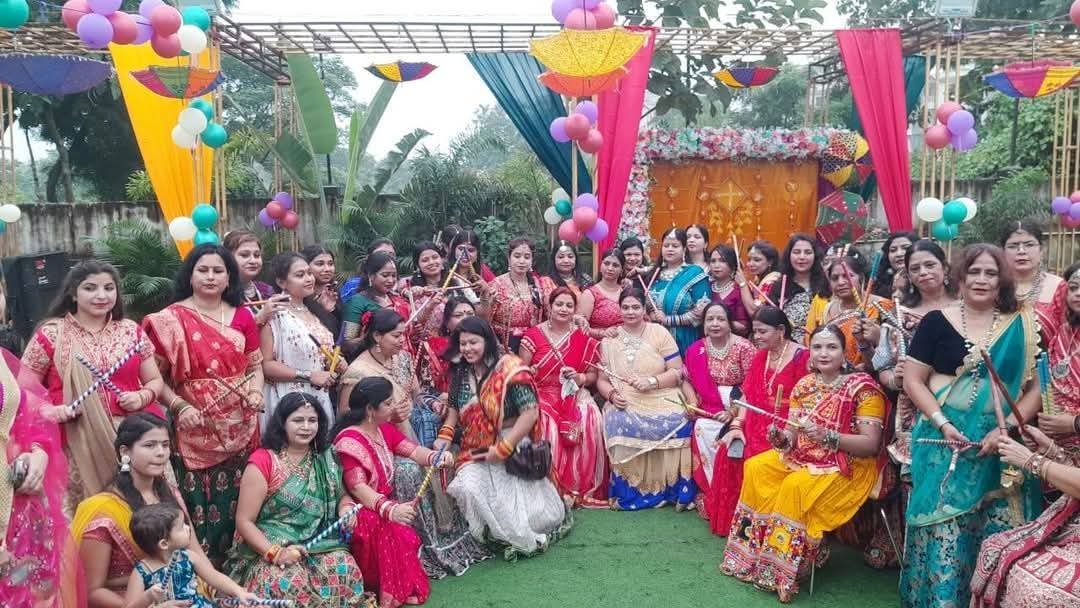 धनबाद: लाईट हाउस रिसॉर्ट में आज डांडिया नाइट ’25 का आयोजन बड़े ही धूमधाम और उत्साह के साथ किया गया। इस रंगारंग कार्यक्रम में शहर के विभिन्न क्षेत्रों से सैकड़ों महिलाओं और बच्चों ने भाग लिया और DJ की धुन पर जमकर डांडिया डांस का लुत्फ उठाया।