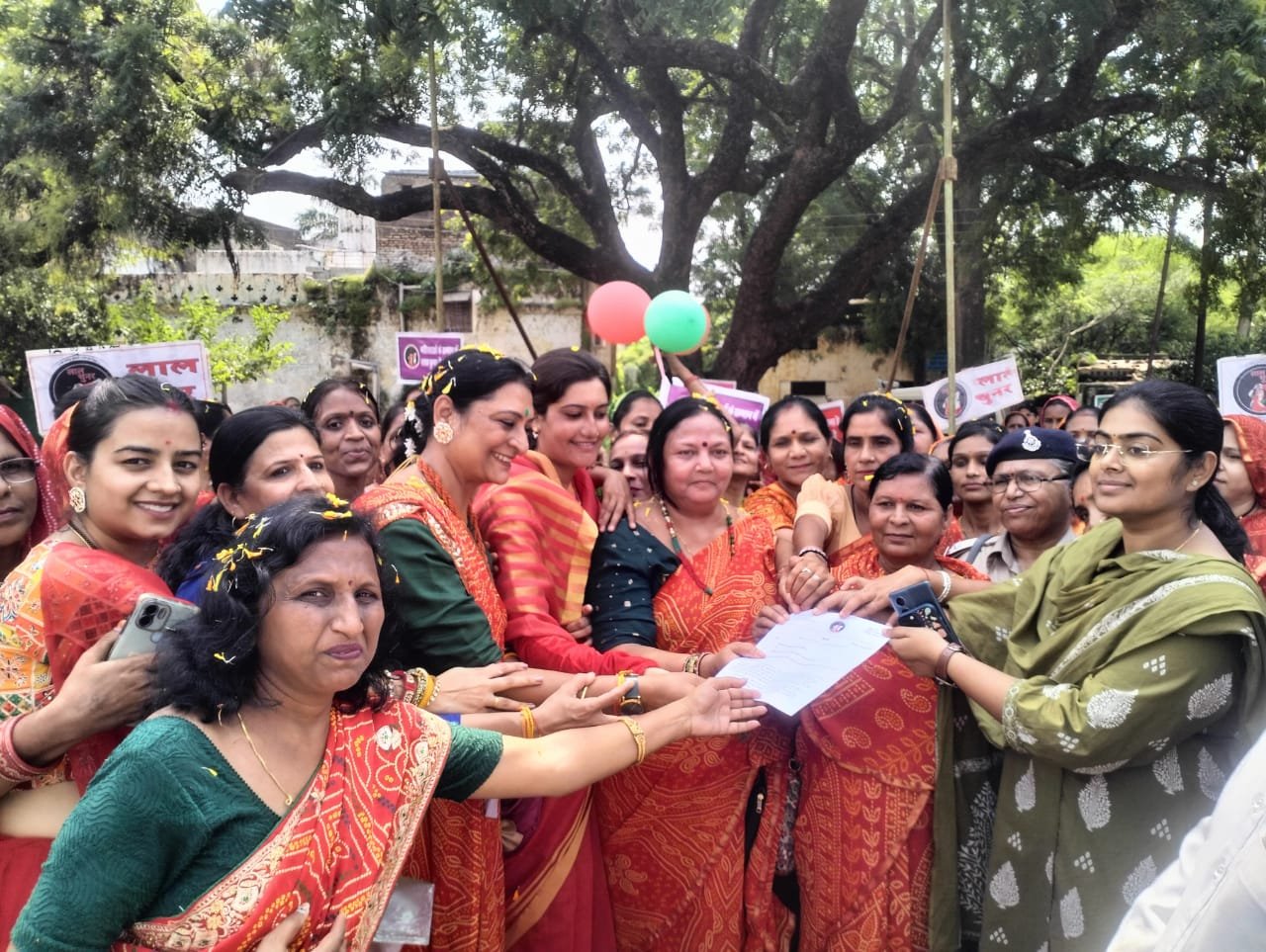 ज्ञापन देने के दौरान बैंड-बाजे की धुन पर घूमर संगीत बजे और लाल चूनर गैंग की संस्थापक मोना सुस्तानी सहित सभी महिलाओं ने उत्साहपूर्वक नृत्य किया। एक महिला ने तो एसडीएम का हाथ पकड़कर उन्हें भी नृत्य में शामिल कर लिया, और इस तरह निधि भारद्वाज ने भी कुछ कदम उठाकर कार्यक्रम को और अधिक जीवंत बना दिया।
