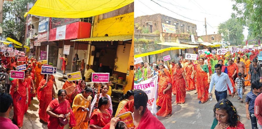 परिवार और समाज की रीढ़ मानी जाने वाली बहुओं के योगदान को सम्मान देने और घर-परिवार में स्नेह एवं सहयोग बढ़ाने के उद्देश्य से रविवार सुबह लाल चूनर संस्था की सभी महिलाएं मंगल भवन में एकत्रित हुईं। यहां से बैंड-बाजे की धुन के साथ महिलाएं बाजार होते हुए राजमहल तक पहुँचीं और एसडीएम निधि भारद्वाज को ज्ञापन सौंपा।