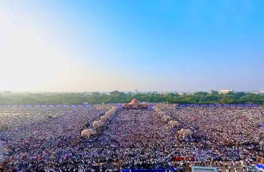 पार्टी के आंकड़ों के मुताबिक, यूपी के 403 विधानसभा क्षेत्रों से कम से कम 5 लाख समर्थक जुटे, जिनमें महिलाओं और बच्चों की उल्लेखनीय भागीदारी थी। बिहार, पंजाब, हरियाणा, मध्य प्रदेश समेत पड़ोसी राज्यों से भी हजारों लोग पहुंचे। लखनऊ की सड़कें नीले झंडों, बैनरों और बसपा के प्रतीक हाथी से पट गईं। समर्थकों के नारों—’बहनजी जिंदाबाद’, ‘जय भीम’, ‘बहुजन हिताय, बहुजन सुखाय’—से मैदान गूंज उठा। राजनीतिक विश्लेषकों का मानना है कि यह भीड़ बसपा की जमीनी ताकत को दर्शाती है, जो 2022 विधानसभा चुनावों में पार्टी के महज 1 सीट और 13% वोट शेयर के बाद कमजोर पड़ चुकी थी।