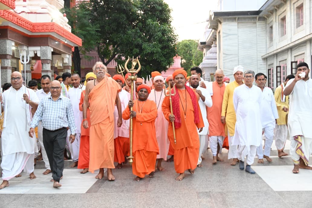 मंदिर के प्रधान पुजारी योगी कमलनाथ जी साधु-संतों के संग भीम सरोवर पहुंचे और पवित्र जल से कलश भरकर शोभायात्रा का शुभारंभ किया। शंखध्वनि, घंटे-घड़ियाल और वैदिक मंत्रोच्चारण से गूंजते वातावरण में यह शोभायात्रा मुख्य मार्गों से होती हुई मंदिर परिसर स्थित शक्ति मंदिर तक पहुँची।