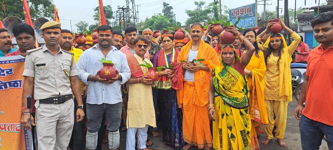 केन्द्रीय अस्पताल ढोरी परिसर स्थित नवनिर्मित गणेश मंदिर की प्राण-प्रतिष्ठा को लेकर निकाली भव्य कलश यात्रा
