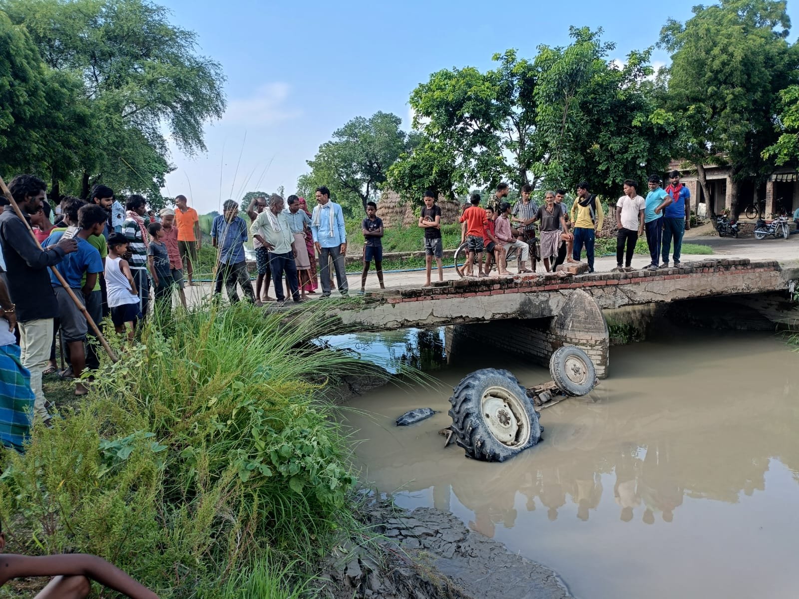 छतिग्रस्त पुलिया बनी हादसे का कारण, ट्रैक्टर नहर में पलटा