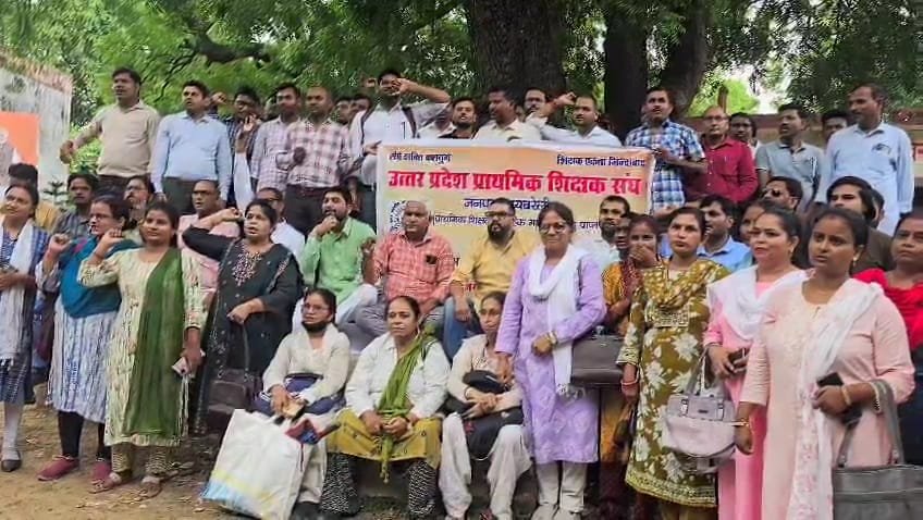 यूपी सरकार के फैसले के खिलाफ शिक्षक संघ ने किया विरोध प्रदर्शन व नारेबाजी