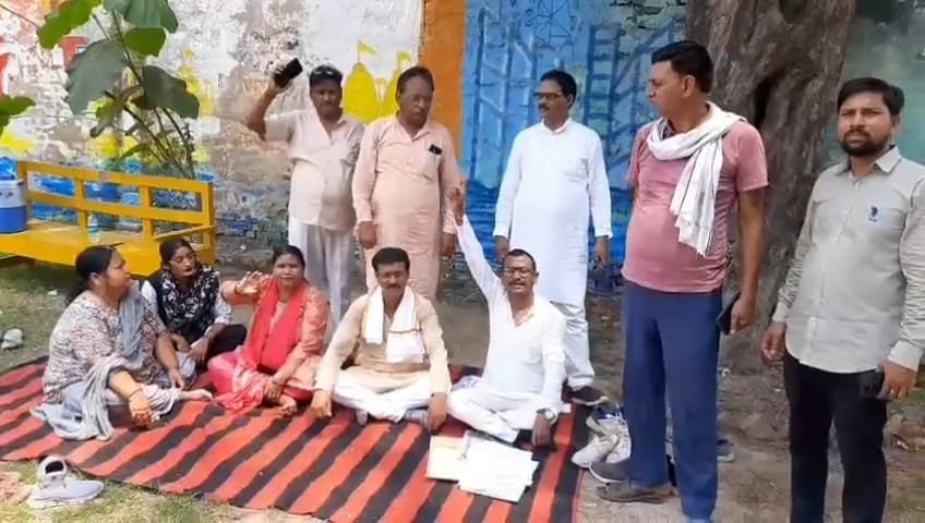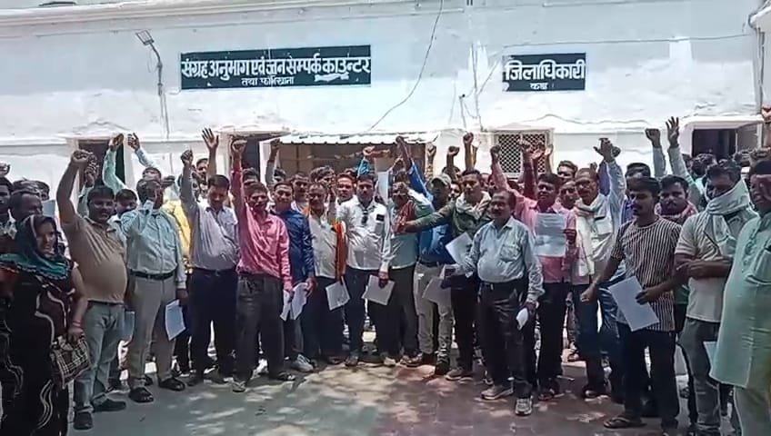 यूपी पावर कारपोरेशन के खिलाफ संविदा कर्मियों ने किया डीएम ऑफिस के बाहर प्रदर्शन