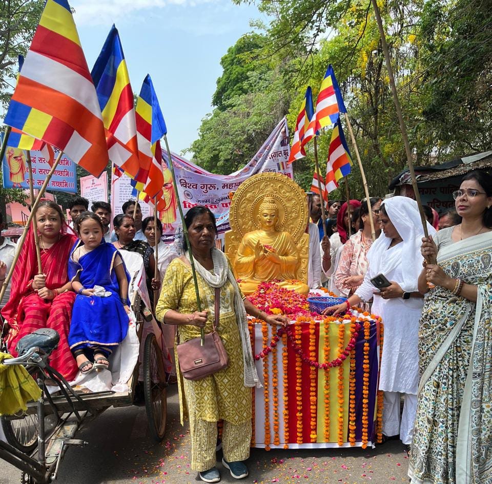 बुद्ध प्रतिमा पर माल्यार्पण कर विभिन्न सामाजिक संगठनों ने निकाली धम्म मैत्री यात्रा, मनाई जयंती