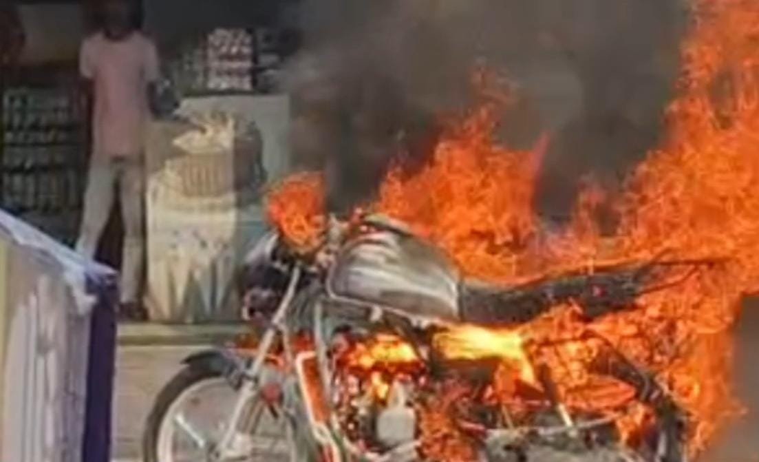 बाइक में अचानक लगी भीषण आग, घटना देख सहम गए लोग