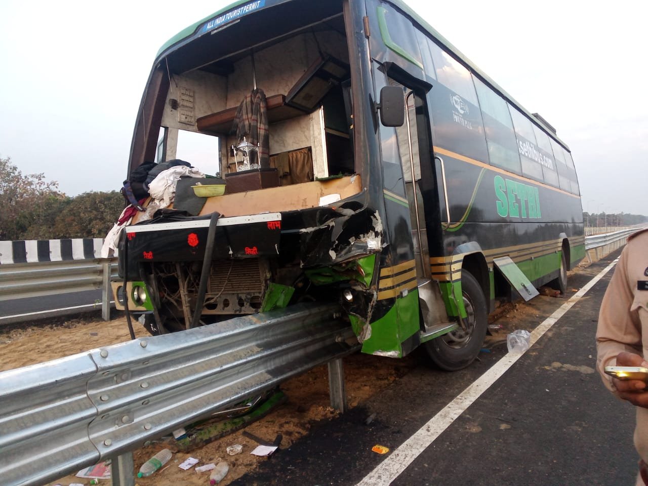 डबल डेकर बस डिवाडर से टकराई, रोड़ पर बैठे कई मवेशियों की हुई मौत